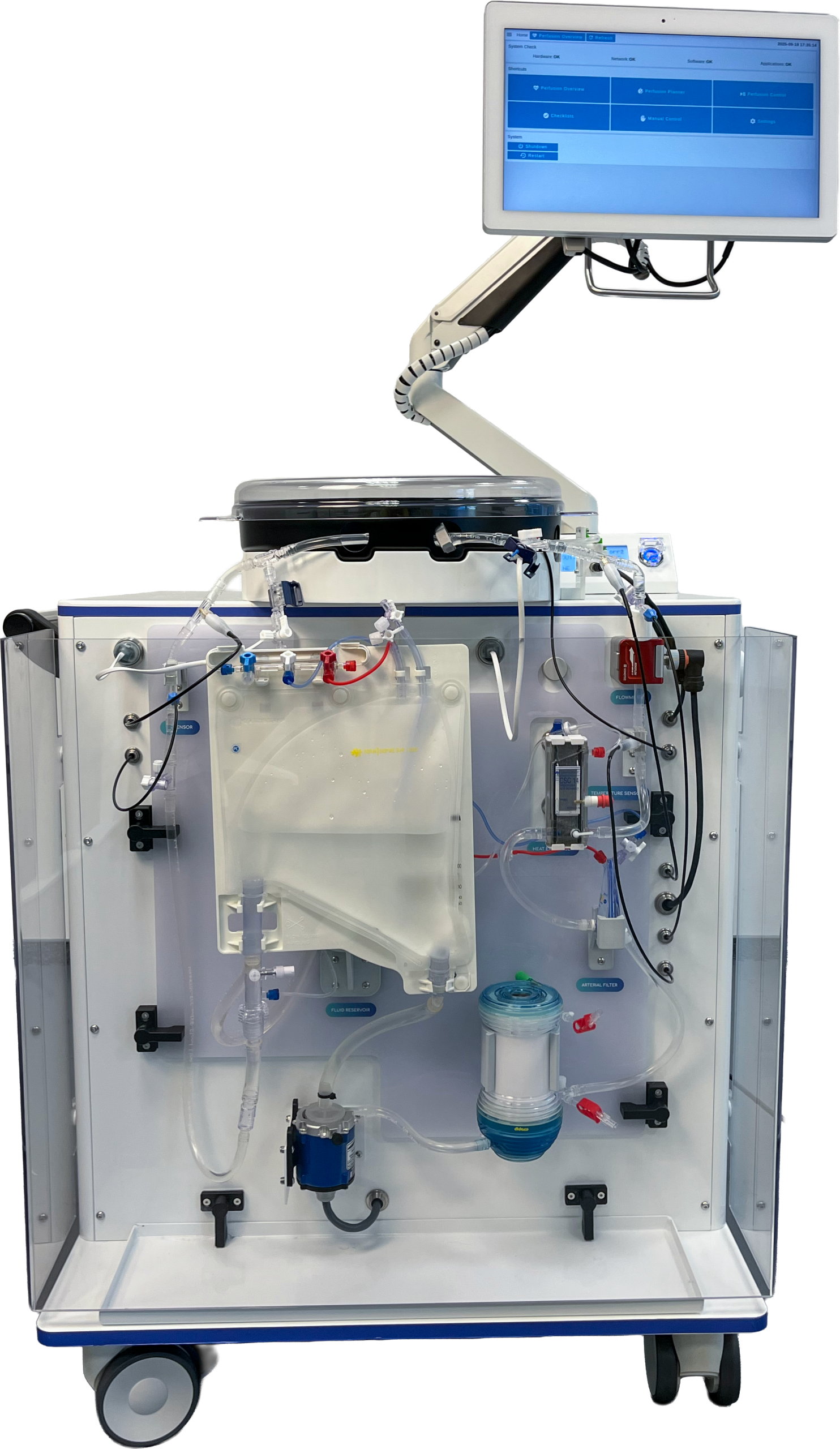 The NanOX Recovery Box is an innovative device for extracorporeal kidney perfusion, enabling long-term storage and continuous monitoring. Thanks to its technological flexibility, it can be used for commonly used hypothermic perfusion (e.g., using Belzer fluid), but especially for novel normothermic perfusion (e.g., using red blood cell concentrate). This design makes the device not only versatile and ready to work with currently available perfusants on the market, but also in line with the megatrends of modern transplantology.